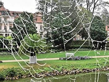 Tautropfen verzieren Spinnennetz