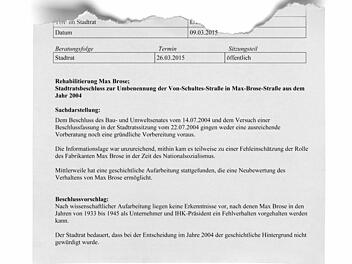 Sollte eine Straße nach Max Brose benannt werden?