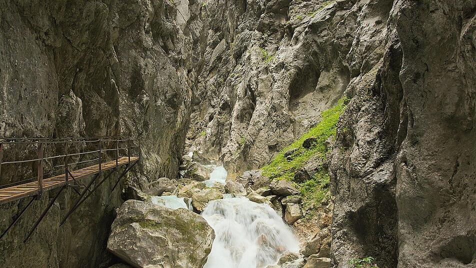Eine Klamm ist eine besonders enge Schlucht im Gebirge. Sie entsteht, wenn fließende Gewässer sich über viele tausend Jahre ihren Weg durch Felsgestein bahnen. In einer Klamm fließt das Wasser meist reißend und du siehst Wasserfälle, Strudel und im Winter ungewöhnliche Eisgebilde. Viele Klammen wurden durch Stege, Brücken und Stollen für Besucher begehbar gemacht. Sie bieten dir ein spektakuläres Wandererlebnis. Wir stellen dir sieben bayrische Klammen vor, die du besuchen kannst. Die meisten von ihnen kannst du das ganze Jahr über erleben, manche sind nur im Sommer zugänglich. Für alle brauchst du festes Schuhwerk, denn es herrschen alpine Verhältnisse. Auch Regenkleidung empfiehlt sich in einer Klamm.