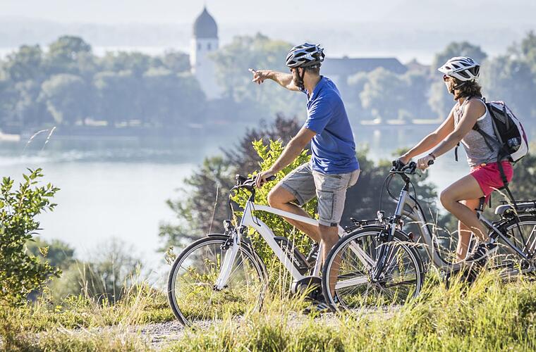 Direkt an die Seenlandschaft angrenzend findet ihr den Chiemgau-Radweg, welcher aufgrund seiner abwechslungsreichen Landschaft zu den beliebtesten Radwegen im Alpenvorland gehört. Startpunkt des Radwegs ist die Eisschnelllaufhalle Max Aicher Arena in Inzell, von welcher ihr die über 35,6 Kilometer lange Strecke nach Reit im Winkl fahren könnt. Für die Strecke müsst ihr 486 Höhenmeter bewältigen, was für eine rund 36 Kilometer lange Radstrecke in der Alpenregion relativ gering ist. Für die Strecke braucht ihr laut dem Chiemgauer Tourismusverband etwa drei Stunden, weshalb euch die Fahrt mit einem E-Bike empfehlen können. Entlang des Radwegs findet ihr viele Möglichkeiten zum Einkehren.