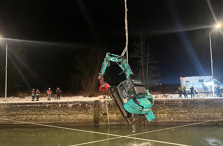 Durch Glätte: Bagger rutscht in Donau - Fahrer kann sich selbst befreien