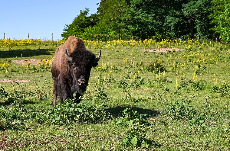 Zwei entlaufene junge Bisons haben in der Oberpfalz einen größeren Polizeieinsatz ausgelöst. Eine Autofahrerin sah die freilaufenden Tiere am Freitagmorgen (15. Mai 2025) auf einer Wiese an einer Straße bei Königstein (Landkreis Amberg-Sulzbach), wie die Polizei mitteilte. Gemeinsam mit Feuerwehr, THW, Tierärzten und Jägern konnten die etwa ein- bis zweijährigen Jungtiere betäubt und schließlich in ihre Koppel zurückgebracht werden. Drei weitere entlaufene Kühe wurden zuvor in eine Koppel getrieben.