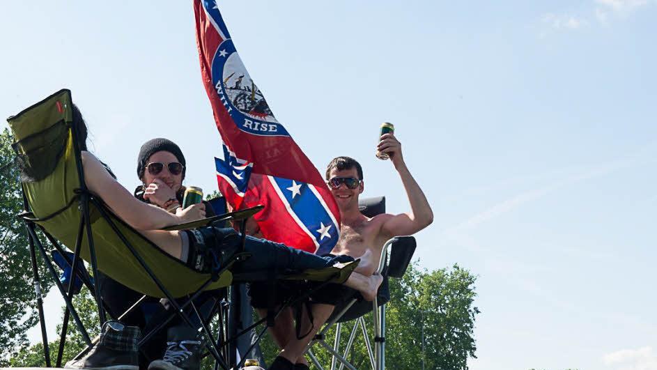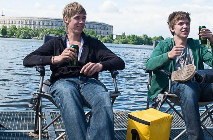 Rock im Park kann wie Strand sein. Drüben, am Dutzenteich. Gegenüber vom Nazi-Bau. Dort, wo die Zelte bis ans Ufer stehen. D4 steht auf dem Schild. Aber ob das überhaupt ein Zeltplatz ist, wissen Pepijn (19) und Melis (17) nicht. Seit Donnerstag sind die beiden Niederländer da. Zelten am Wasser, halb auf dem Überlauf aus Beton, halb auf dem Weg. Das geht. Sie haben Matten dabei. Und Bier.