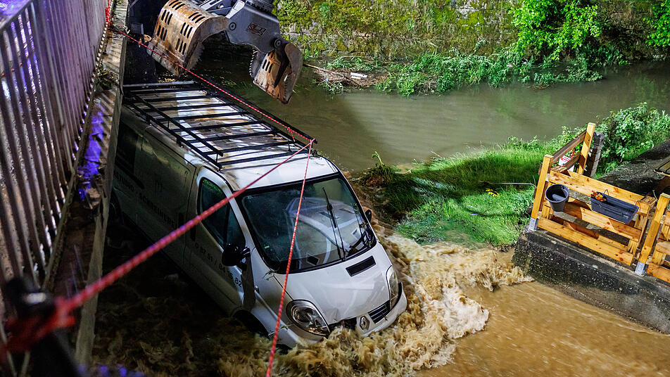 Nach starkem Regen haben Wassermassen in der Gemeinde Kastl in der Oberpfalz Autos über die Straßen treiben lassen und Menschen in ihren Häusern eingeschlossen.