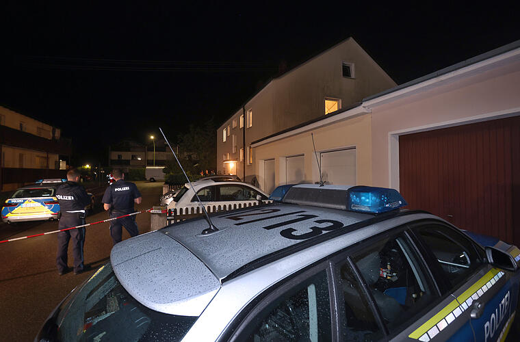 Zahlreiche Einsatzkräfte von Polizei und Rettungsdienst waren in dem Wohngebiet in Langweid am Lech bei Augsburg bis in die frühen Morgenstunden im Einsatz. Sie sperrten den Tatort mit Flatterband ab, sicherten Spuren und befragten Zeugen.