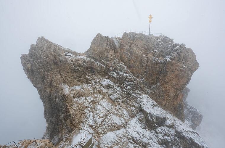 Trotz Dauerregens im Tal und massiven Schneefalls in den Bergen haben sich Bergsteiger auf den Weg zum Gipfel der Zugspitze gemacht. Auf etwa 2500 Metern kamen sie jedoch nicht mehr weiter, da die Witterung ihnen einen Strich durch die Rechnung machte.