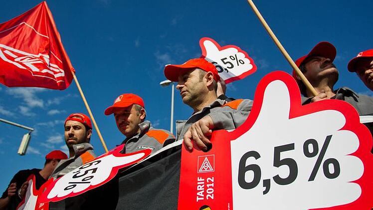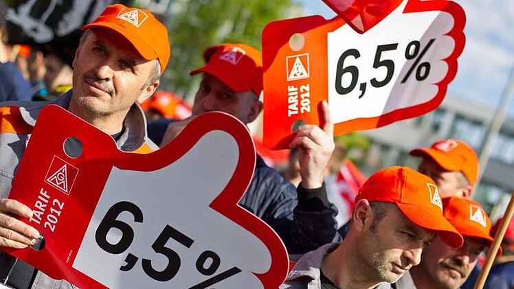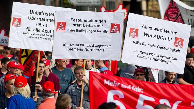 Rund 6000 Metall-Beschäftigte aus dem Raum Nürnberg haben am Donnerstag vorübergehend die Arbeit niedergelegt und für höhere Löhne demonstriert.