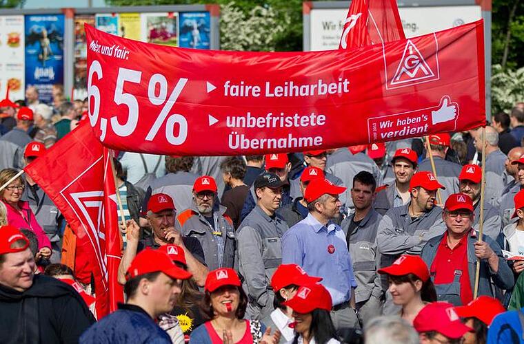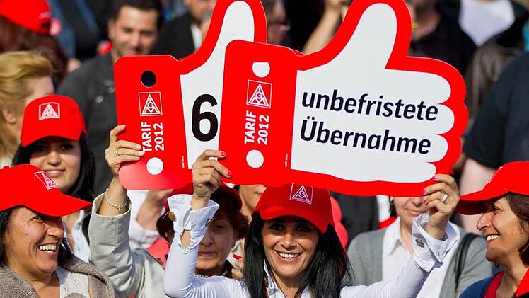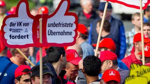 Besonders viele junge Leute seien deshalb auf die Straße gegangen. Die Gewerkschaft hatte bayernweit mehr als 70.000 Beschäftigte in gut 90 Betrieben zu Warnstreiks aufgerufen. Sie fordert 6,5 Prozent mehr Lohn sowie die Übernahme der Auszubildenden und die Einschränkung der Leiharbeit.