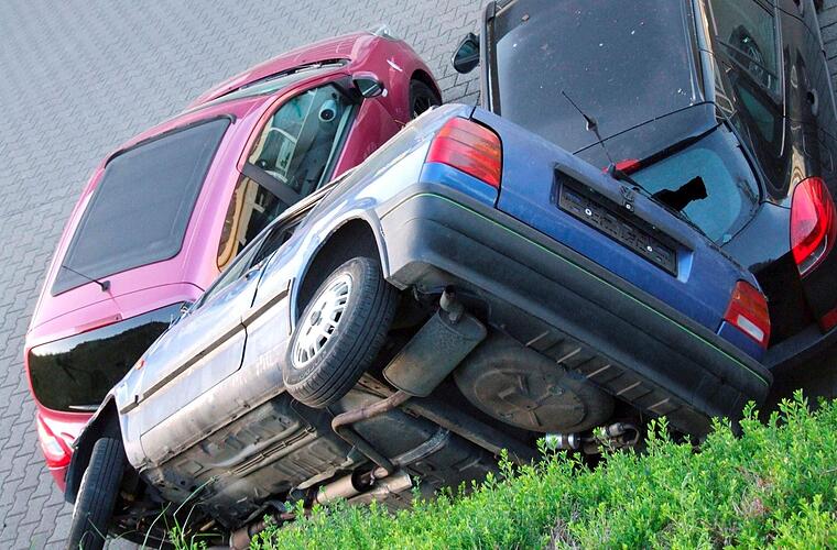 Dass da etwas nicht stimmen konnte, merkte ein Passant im hessischen Büdingen am Mittwochmorgen sehr schnell, als er um 5 Uhr einen Polo schräg auf zwei anderen Autos "parkend" sah. Er verständigte die Polizei, die nach und nach die ungewöhnliche Parkposition aufklärte.