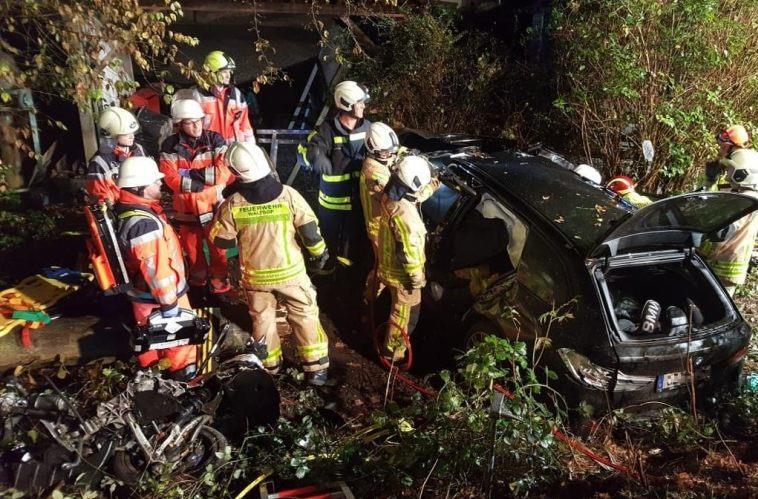 Ein 17-Jähriger hatte sich unerlaubt hinter das Steuer eines 400-PS-starken Autos gesetzt und einen verheerenden Unfall gebaut. Ein 15-Jähriger schwebt in Lebensgefahr. Foto: Feuerwehr Waltrop/dpa