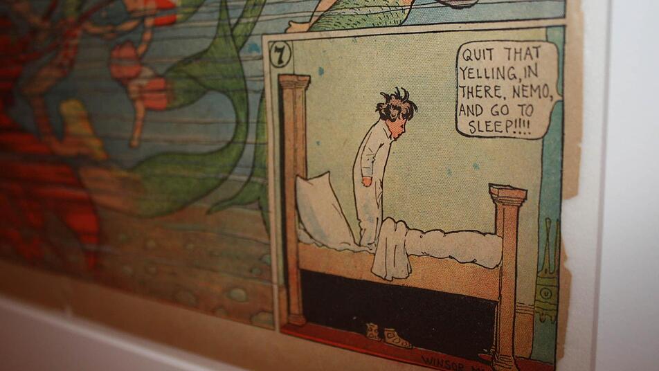 Die Ausstellung, die die beiden Künstlerinnen besuchen, beschäftigt sich mit Winsor McCay, einem der berühmtesten amerikanischen Karikaturisten. Er war um die Jahrhundertwende tätig und starb 1934. Ein Klassiker des Genres, von vielen als ein ideeller Vorreiter angesehen. "Ich bin ein großer Fan von Winsor McCay und habe selbst etliche Bände mit seinen Zeitungsstrips zu Hause. Die hier hängen sind aus der Geschichte ,Little Nemo in Slumberland‘, eine seiner ganz berühmten Reihen. Sie sind aus dem New York Herald, von 1910", staunt die finnische Zeichnerin ehrfürchtig beim Anblick der Seiten.