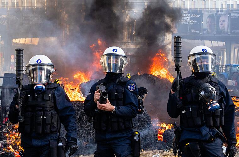 Die Polizei setzte Wasserwerfer gegen Demonstranten ein, die versuchten, Absperrungen zu durchbrechen, wie die Polizei auf Nachfrage der Deutschen Presse-Agentur bestätigte. Zudem wurden Brände gelegt, Pyrotechnik gezündet und Tränengas eingesetzt, wie auf Bildern zu sehen war. Die Angriffe der Demonstranten mit Kartoffeln und Feuerwerk richteten sich auch gegen das Europaparlament.