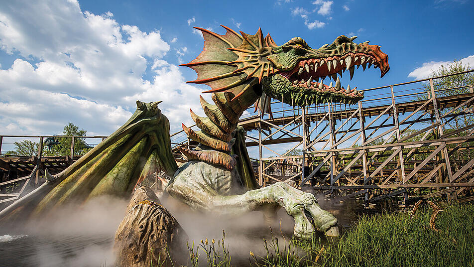Attraktionen: Holzachterbahn "Joris en de Draak", Themenfahrt "Symbolica", der Märchenwald mit über 30 Märchenszenen, Aquanura – die größte Wassershow Europas, Dive Coaster Baron 1898, Villa Volta.