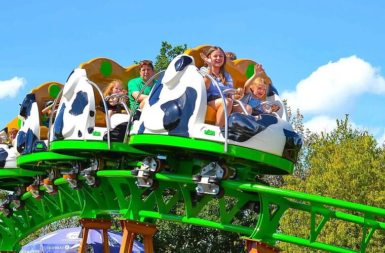 Zwischen den Fahrgeschäften laden Picknickplätze und Grünflächen in dem Park im schwäbischen Landkreis Unterallgäu zum Ausruhen ein. Die Anlage bietet zudem regelmäßige Shows, wie Tierpräsentationen oder Mitmachaktionen, die das Erlebnis abrunden.