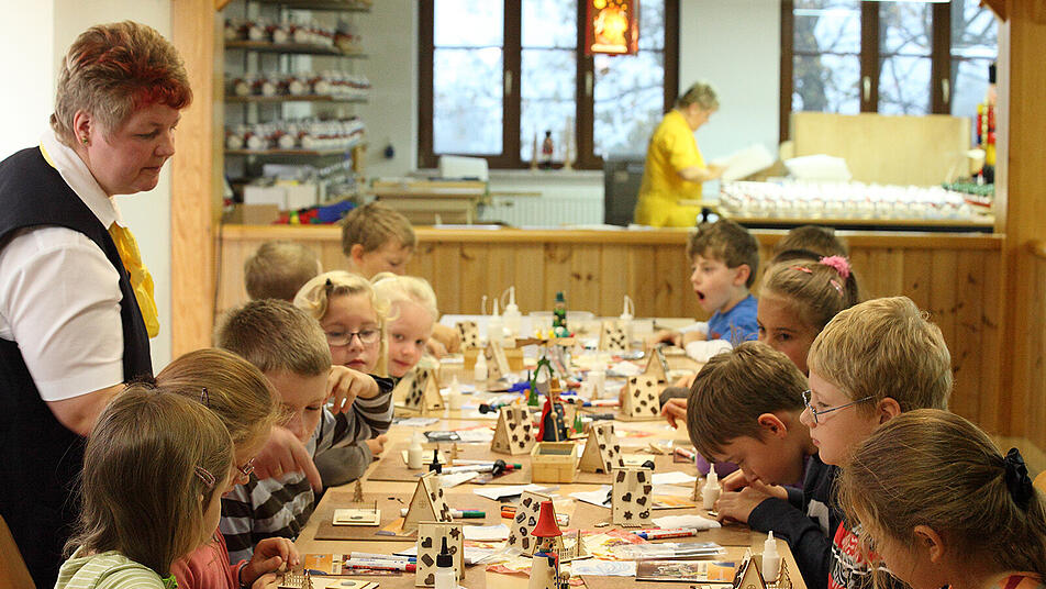 Die Oster-Bastelaktion in der Seiffener Volkskunst Schauwerkstatt in Seiffen im Erzgebirge (Sachsen)