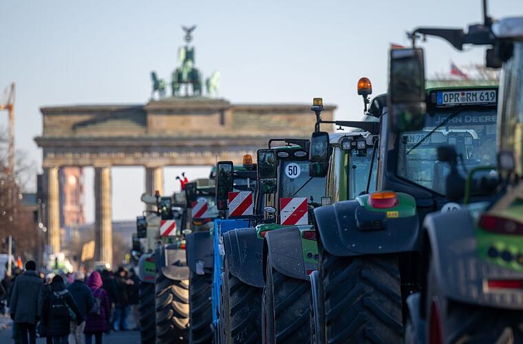 Lange Konvois von Traktoren und Lastwagen ziehen sich durch zahlreiche Städte, zig Autobahnauffahrten sind bundesweit zeitweise blockiert: Die Aktionswoche der Bauern gegen die Agrarpolitik der Bundesregierung hat am Montag in Deutschland für Aufsehen gesorgt. Gemessen an den Teilnehmerzahlen fanden vor allem in Großstädten größere Demonstrationen statt. Hunderte Traktoren und andere Zugmaschinen sorgten aufgrund ihrer Größe für beeindruckende Bilder, viel Aufmerksamkeit - und etliche Verkehrsbehinderungen.