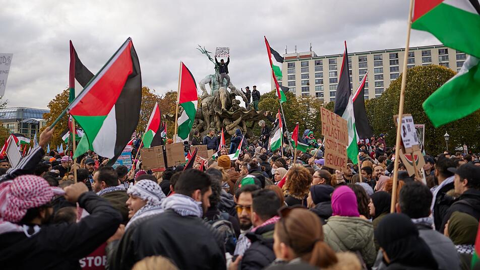 Erneut ziehen propalästinensische Demonstranten durch die Straßen in Berlin. Für die Veranstaltung gelten strenge Auflagen. Der Alexanderplatz füllt sich zunehmend mit Menschen.