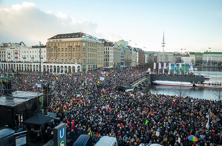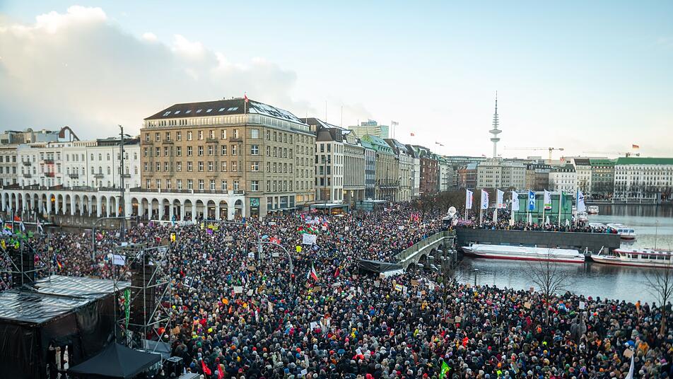 Wegen des großen Menschenandrangs musste in Hamburg eine Demonstration gegen rechts und die AfD abgebrochen werden. «Wir müssen die Kundgebung vorzeitig beenden», sagte Kazim Abaci vom Verein Unternehmer ohne Grenzen, der die Kundgebung mitorganisiert hatte. Er verwies auf Sicherheitsbedenken.