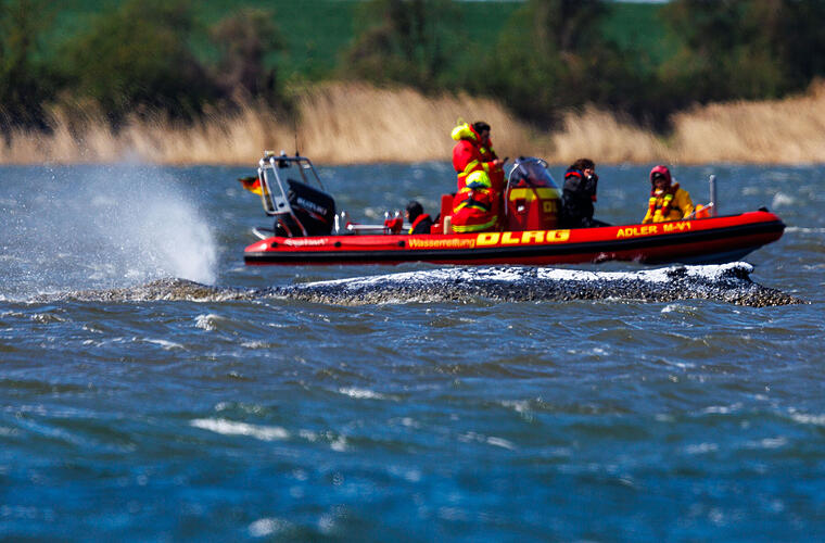 - Montag, 31. März 2026: Rettungsaktion mit Boot, Wal schwimmt seewärts
