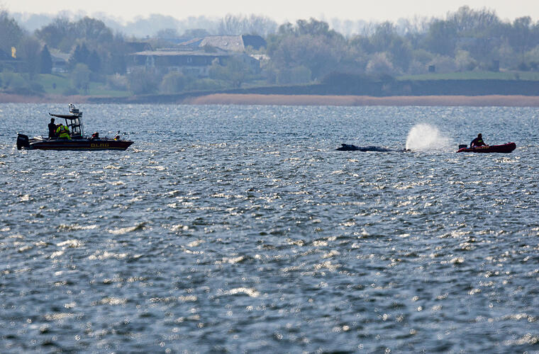 Der Meeressäuger hatte sich am Montagmorgen (20. April 2026) auf den Weg gemacht. Er änderte mehrfach seine Richtung - mit Kirchdorf am Ende der Bucht auf der einen und dem Weg zur Ostsee auf der anderen Seite. Schließlich schwamm er, von den Booten begleitet, stetig in die richtige Richtung - bis zum Halt am Ende der als Kirchsee bekannten Bucht.