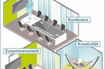 Trotz der zunehmenden Digitalisierung und Flexibilisierung: Das Büro an sich wird es auch in Zukunft geben. Es bleibt als gemeinsamer Treffpunkt für die Kollegen erhalten, sagt Rief. Es ist der Ort, an dem gemeinsam gearbeitet wird. So gewinnen Konferenzräume mit hochmoderner technischer Ausstattung immer mehr an Bedeutung. "Vernetzen können wir uns überall, aber eine große digitale Fläche, an der mit anderen Kollegen gemeinsam gearbeitet werden kann, haben wir nicht zu Hause oder im Zug", erzählt Rief. Das kann etwa ein riesiger Touchscreen in einem Konferenzsaal sein.