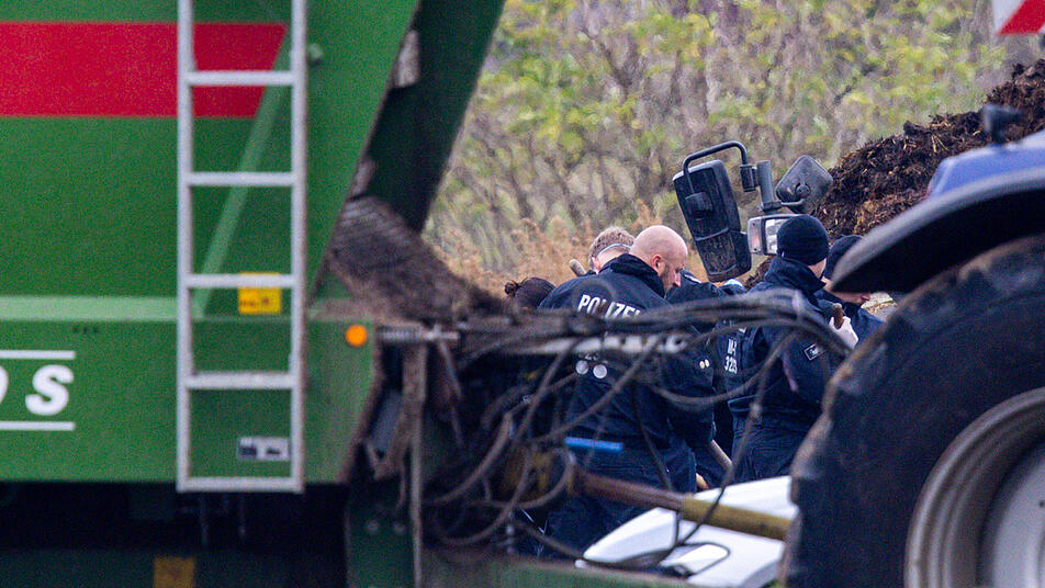 Die Polizei war am Montag mit mehreren Fahrzeugen auf dem Gelände eines landwirtschaftlichen Betriebes präsent, auf dem auch Rinder gehalten werden. Die Beamten hatten auch einen Minibagger auf einem Anhänger dabei, der aber zumindest nach Beobachtung eines dpa-Fotoreporters bis zum Nachmittag nicht zum Einsatz kam. Mit Mistgabeln durchsuchten Polizisten einen Misthaufen. Unklar ist, wonach sie suchten.