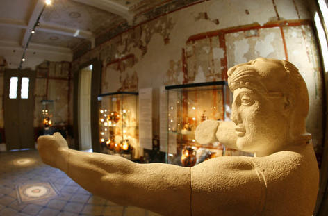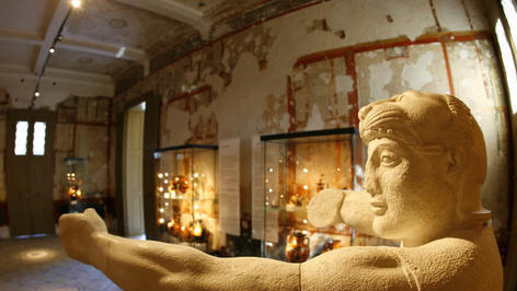 Von den Wänden leuchten kräftiges Rot, intensives Blau und sattes Grün: Im Aschaffenburger Pompejanum wird das Bild von der Antike schlagartig farbig.
