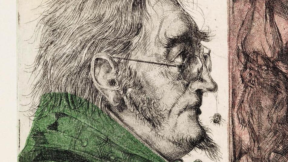 Der größere Teil der Ausstellung ist wieder einmal, wie sollte es anders sein, ein Paradies für Bibliophile. Namen wie Fritz Fischer, Uwe Bremer, Alfred Kubin lassen den Liebhaber der Buchillustration aufhorchen und vor den Schaukästen schwelgen.