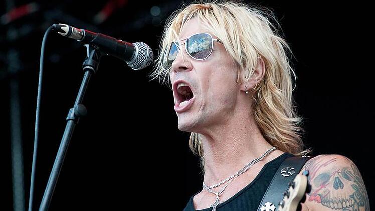 Tag zwei bei Rock im Park beginnt. Ex Guns'n Roses Bassist Duff McKagan weckt die Park-Rocker Fluchen, Spuken und dazu Gitarre spielen. Nicht nur locker aus der Hüfte, sondern auch mal senkrecht, mit abgestreckten Armen vor der Brust.