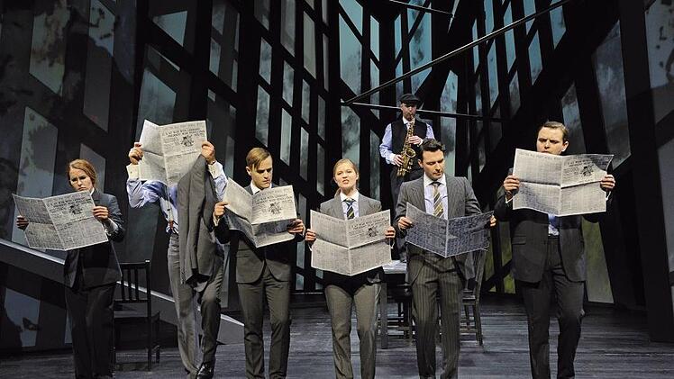 Finanzkrise auch auf den Bühnen. Andreas Veiel untersucht in "Himbeerreich" die Befindlichkeiten der Banker, Klaus Kusenberg machte aus Lucy Prebbles "Enron" in Nürnberg vor einigen Jahren eine saftige Revue. Sibylle Broll-Pape und ihr Dramaturg Olivier Garofalo gehen in Stefano Massinis "Lehman Brothers. Aufstieg und Fall einer Dynastie" einen anderen Weg. Ein Schauspielerkollektiv mit changierenden Rollen arbeitet sich durch die glücklicherweise gekürzte Textmasse Massinis.