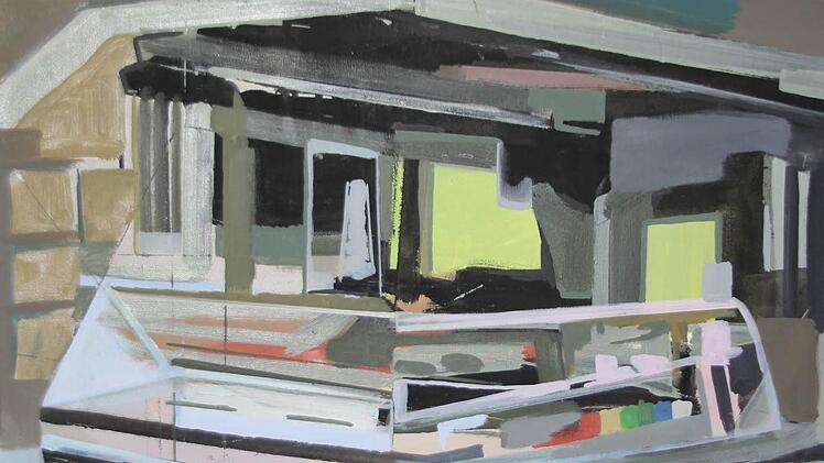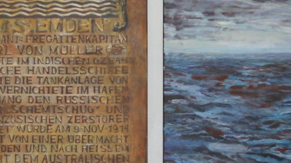 Und dass sie eher gegenständlich als abstrakt arbeiten. Scheinbar ganz traditionell wie Jürgen Strege, Jahrgang 1956. Den interessiert die Zeitgeschichte, und er malt schon mal das kaiserlich untergegangene Schlachtschiff "Emden" - mit ironischem Unterton nur durch Zitieren heroisch-chauvinistischer Schlachtenmalerei? Oder die Spitzweg-Paraphrasierungen in kleinem Format - Wiederbelebung oder Persiflage? Ganz anders wieder die Stillleben im 30er-Jahre-Stil.