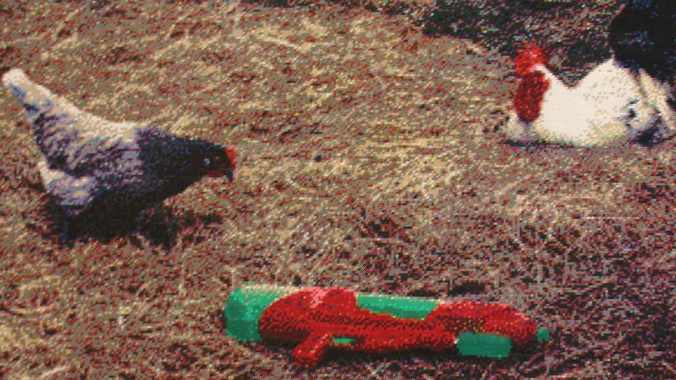 Mehr als ein Unterton summt in den Arbeiten von Martin Kreim. In seinen Bild-Inszenierungen figurieren tätowierte Frauen, ein Hauch Edward Hopper'scher Entfremdung weht durchs Tableau, düster blickt ein Affe im Vordergrund, Symbol fürs verdrängte Unbewusste wie in Le Fanus Erzählung "Grüner Tee"? Petra Ottkowski spielt mit geometrischen Formen, verschachtelter Zwei- und Dreidimensionalität, man assoziiert Op-Art und konkrete Kunst. Am spektakulärsten sind zweifellos die Arbeiten von Magdalena Drebber. Ausgehend von Fotografien, platziert sie Zehntausende von Steckperlen auf Sperrholz, für die größerformatige "Konferenz" eine Fron von zehn Wochen acht Stunden täglich. Wie bei Gobelinstickerei ergibt sich ein Pixel-Effekt, eine Reduzierung der Farben. Die Interpretation von Hahn, Henne und kindlicher Pumpgun möge sich jeder selbst überlegen.