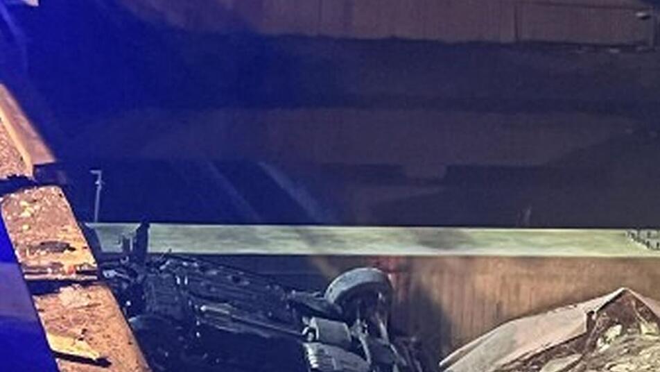 Das Auto prallte zunächst gegen einen Erdwall, wurde über eine 1,5 Meter hohe Betonwand geschleudert und stürzte dann in die Tiefe. Das Fahrzeug überschlug sich und blieb schwer beschädigt auf dem Dach liegen. Es wurde von einem Abschleppunternehmen geborgen. Die Polizei entnahm dem Fahrer eine Alkohol-Blutprobe.