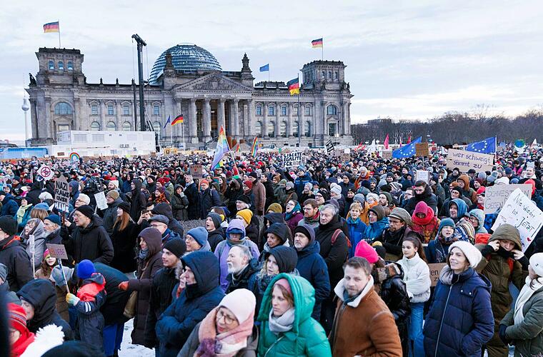 An den vergangenen beiden Wochenenden hatten in vielen deutschen Städten Hunderttausende Menschen für Demokratie und gegen Rechtsextremismus demonstriert. In Berlin waren es am 21. Januar nach Angaben der Polizei mehr als 100.000 Demonstranten, die sich im Regierungsviertel versammelten. Wegen der Menschenmassen mussten der U-Bahn-Verkehr und die S-Bahnen zum Teil unterbrochen werden.