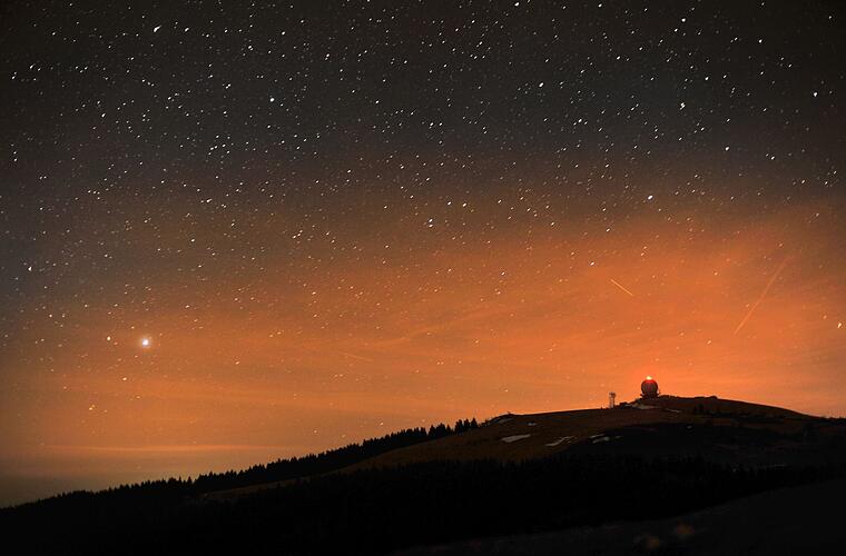 Unsere Lufthülle wirkt nach Angaben des Deutschen Zentrums für Luft- und Raumfahrt (DLR) wie ein Filter. Der lässt nur das rote Licht geradeaus durch, während die anderen Farben in andere Richtungen abgelenkt werden.