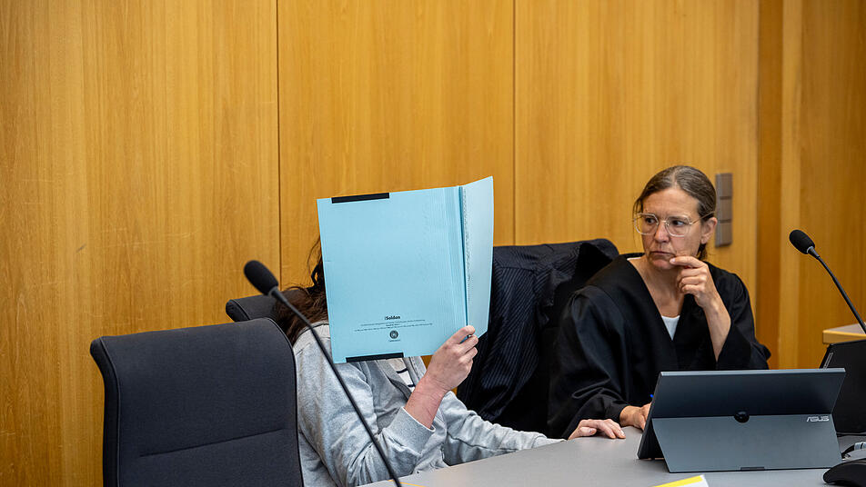 Die Angeklagte (l.) sitzt im Landgericht Ulm neben ihrer Verteidigerin Christina Seng-Roth. Die Frau soll 2024 in Göppingen einen Mann stranguliert und mit einem Messer getötet haben ...