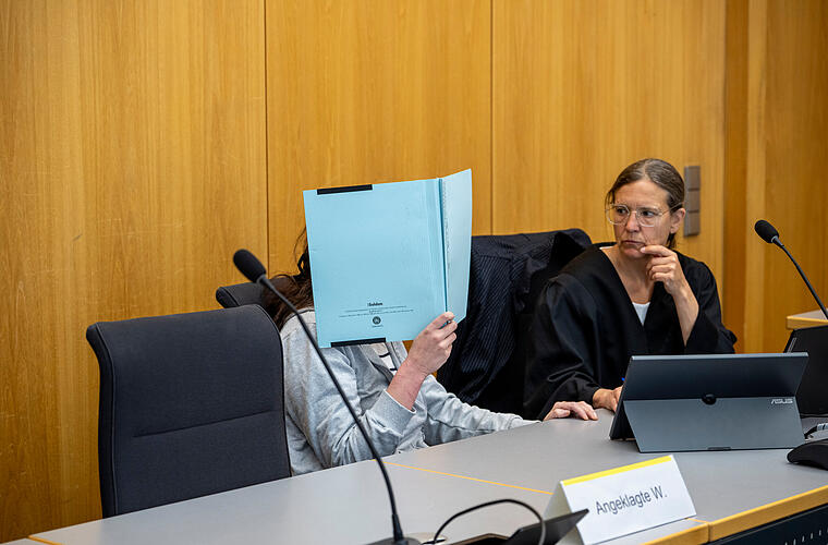 Eine Justizwachtmeisterin führt die Angeklagte im Landgericht Ulm zur Verteidigerin Christina Seng-Roth (r.) ...