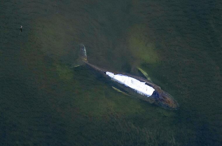 Fachleuten zufolge liegt das Tier im Sterben. Der Wal reagiere nicht mehr auf Boote, was laut Bianca König von der Tierschutzorganisation Whale and Dolphin Conservation (WDC) Deutschland ein Zeichen für den Sterbeprozess sei.