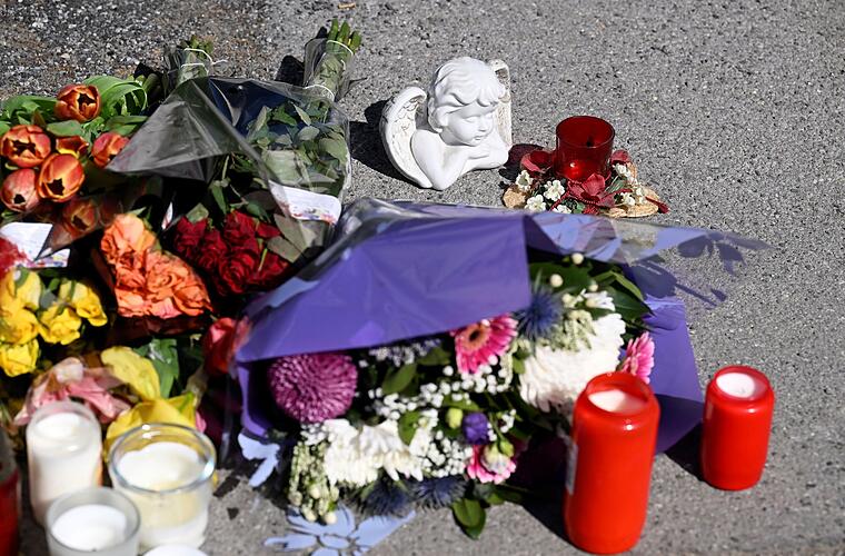 Unbekannte haben an der Stelle, wo ein 17-jähriger einen 14-jährigen Jungen erstochen hat, Blumen niedergelegt und Kerzen aufgestellt.