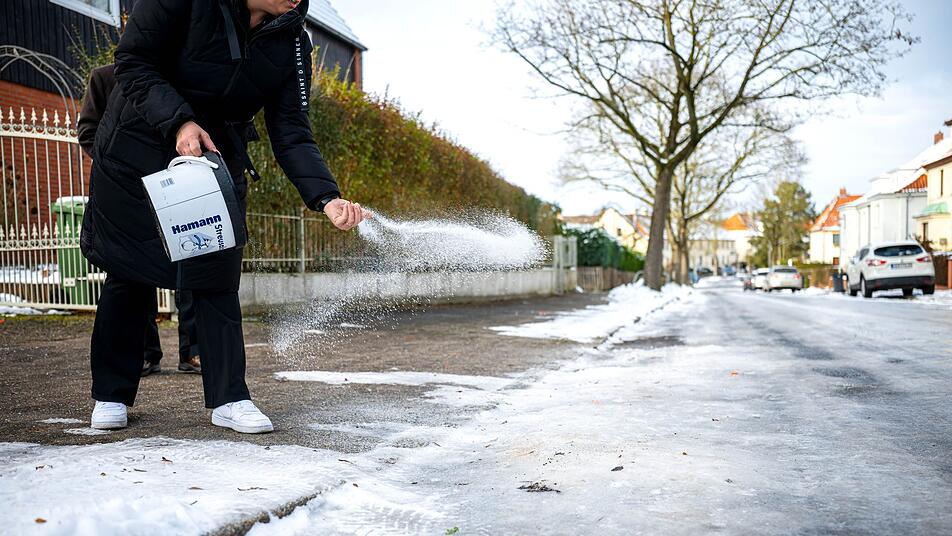 Die turbulente Wetterlage mit Schneefall und Glätte beschert den Baumärkten viel Zulauf. Streugut ist besonders gefragt - aber nicht überall erhältlich.