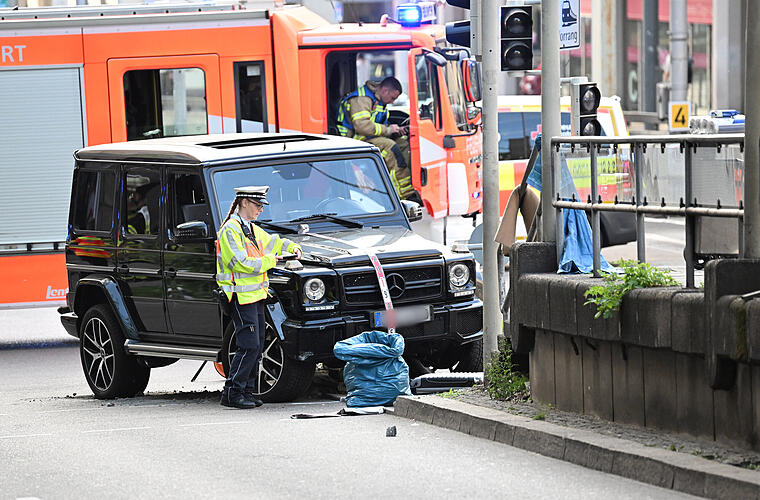 Zum anderen ist da die Suche nach Antworten. Was zu dem Unfall an einer großen Kreuzung direkt an einer Stadtbahn-Haltestelle führte, bleibt ungewiss. In der Mitteilung der Ermittler am Samstagabend ist nur davon die Rede, dass der Wagen "aus bislang unbekannter" Ursache nach links von der Fahrbahn abkam und gegen das Geländer eines Fußgängerüberwegs prallte. Am Freitagabend war ein Sachverständiger vor Ort. Polizistinnen und Polizisten vermaßen das schwarz lackierte Unfallauto, fotografierten und leuchteten auch noch einmal mit einer Taschenlampe unter die Mercedes-G-Klasse, als ein Abschleppwagen das Fahrzeug mit Hilfe eines Krans in die Luft gehoben hatte.