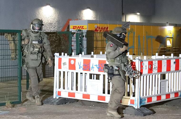 Außerdem untersuchte das LKA am Dienstag weiter das Bauwagen-Gelände, wo der gesuchte Burkhard Garweg (55) gewohnt haben soll, sowie eine Wohnung in der Grünberger Straße im Kneipenviertel des Kiezes. Ein Foto der Zeitung «B.Z.» zeigte vermummte und bewaffnete Zivilpolizisten mit der Aufschrift «BKA» auf ihren Westen. Die Zeitung zitierte einen Späti-Verkäufer, der von Sichtschutz an den Scheiben der Wohnung in der Grünberger Straße und dem Kauf vieler teurer Amazon-Gutscheine durch die Bewohnerin berichtete.
