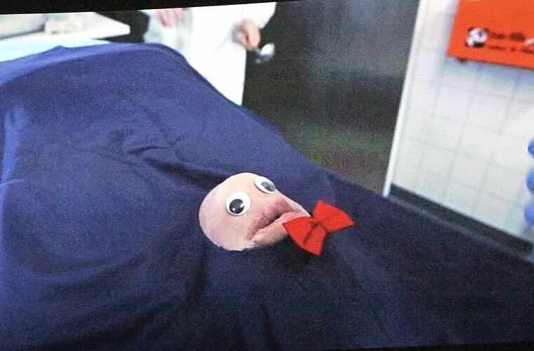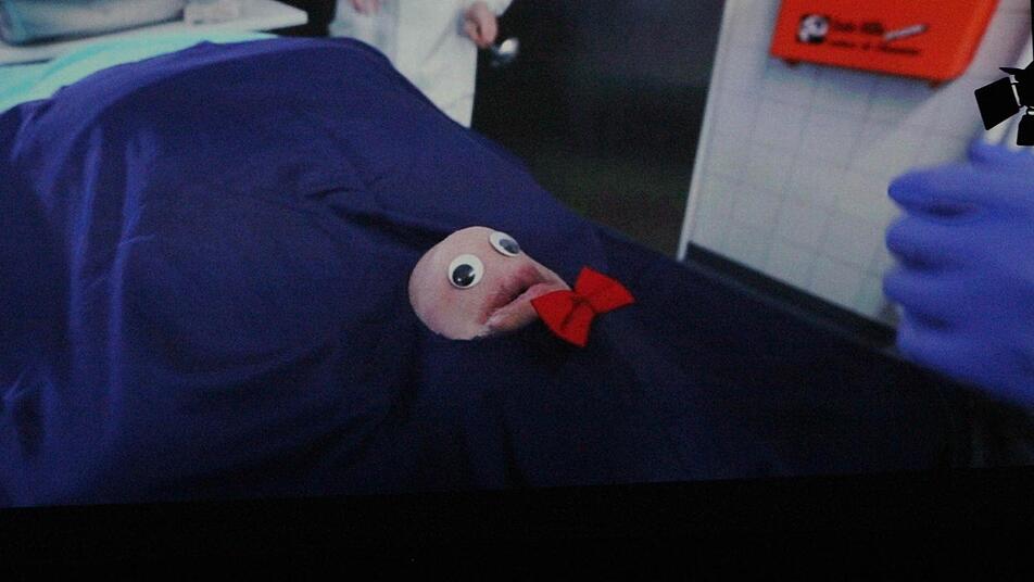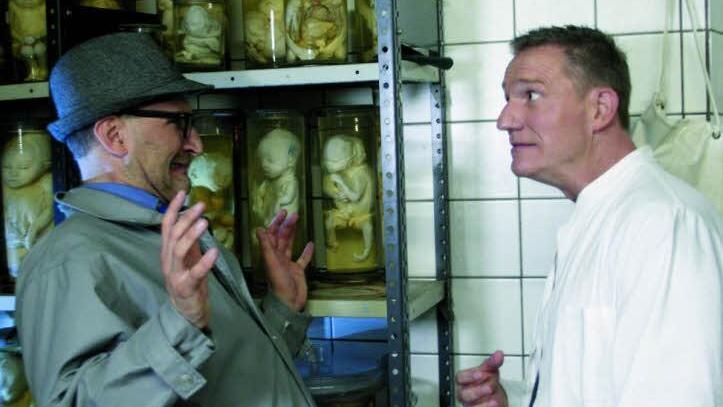 Richtig in Schwung kommt die Krimi-Persiflage, als die Polizisten im Leberkäsbrödla mit ABS, sprich a bissla Senf, einen Ring entdecken. Da reicht kriminalistischer Scharfsinn allein nicht, da braucht's die Hilfe des Gerichtsmediziners Axel Zuck (Michl Müller), der kiffend seziert und ein Loblied auf den "Kloß mit Soß" singt.