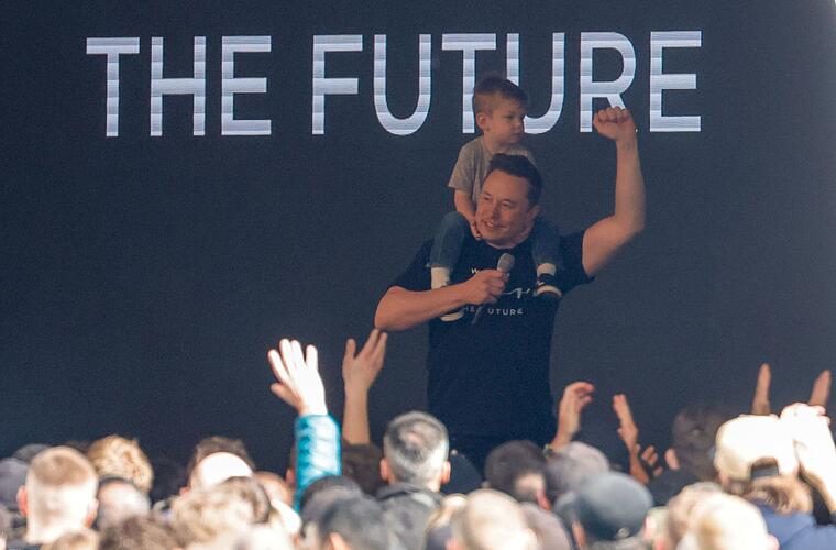 «Sie können uns nicht stoppen!» (»They can't stop us!»), rief er ihnen unter Jubel und «Elon»-Rufen zu und bekannte sich unmissverständlich zum Standort. Begleitet wurde Musk auf der Reise von seinem Sohn, X Æ A-XII, den er während seines Auftritts vor den Beschäftigten auf den Schultern trug.