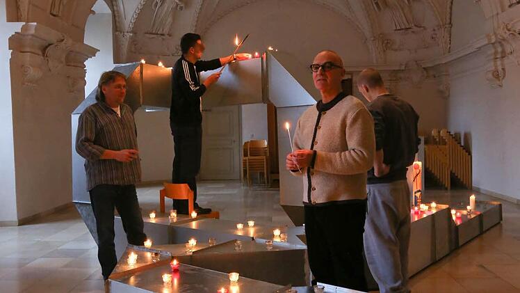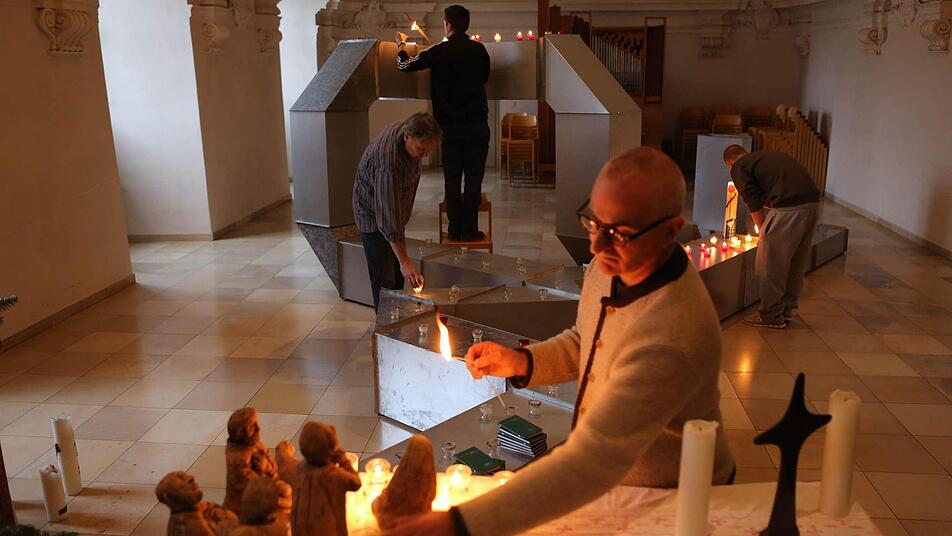 Was für den nicht Involvierten etwas hermetisch klingt. Tatsache ist, dass die Gefangenen mit Feuereifer am Kunst-Baukastensystem werkelten. Feuer ist wörtlich zu nehmen: Sie illuminierten ihr Gebilde mit Dutzenden von Lichtern.