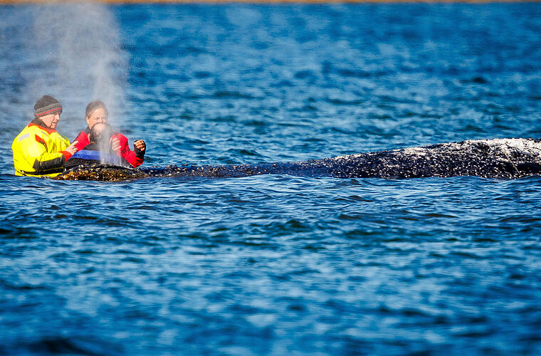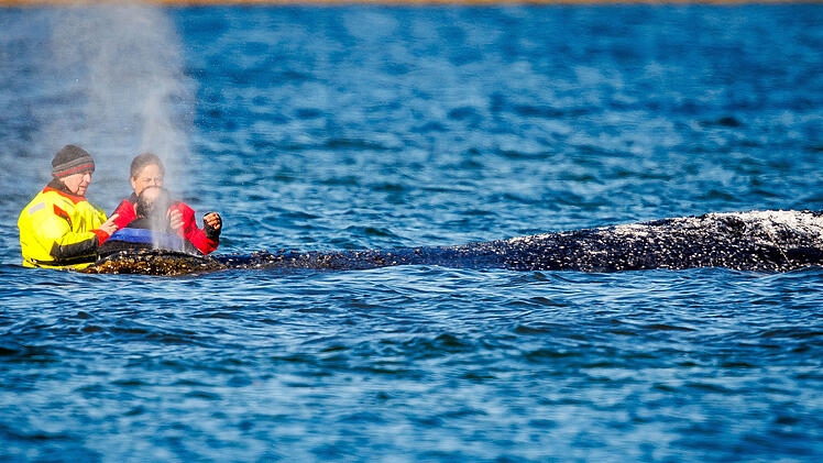 Bereits mehrfach hätten in den vergangenen Tagen Menschen versucht, zu dem Wal zu gelangen, berichtete der Sprecher. Zuletzt war eine Frau im Neoprenanzug von einer Insel-Fähre ins Wasser gesprungen.