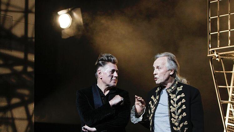 Die eigentliche Hauptperson der Komödie ist ja Rosalinde/Ganymed (Josephine Köhler). Ihr gelingt, die auch durch ihre Kleidung angedeutete Wandlung vom noch eher unbedarften Girlie, gespiegelt in der Cousine Celia (Lilly Gropper), über den raffinierten Ganymed zur gereiften und selbstbewussten Frau virtuos auf die Bühne zu bringen. Wobei die Leistungen ihrer Kolleginnen und Kollegen den ihren kaum nachstehen. Die Nürnberger Schauspiel-Schlachtrösser Pius Maria Cüppers als neuer Herzog und Amiens, Jochen Kuhl als dessen exilierter Bruder und Höfling Le Beau, besonders Frank Damerius als Hofnarr Touchstone brillieren wie gewohnt. Wobei wir Heutige die Einsprengsel dieses Außenseiters und des Misan-thropen Jaques (Heimo Essl mit Iro-Schnitt) mit Kopf nickendem Einverständnis rezipieren - Schopenhauers pessimistische Philosophie in knapp 30 Versen zusammengefasst.