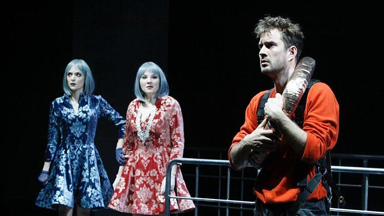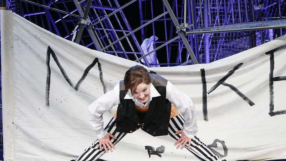 Wobei die Szenen zu Beginn, im Umkreis des dämonisch-diktatorischen neuen Herzogs (Pius Maria Cüppers) zu den eindrucksvollsten dieser Inszenierung geraten sind. Nicht genug zu loben, dass der Text (Übersetzung Jürgen Gosch und Angela Schanelec) weitgehend beibehalten wurde und nicht wie manchesmal die Hof-Exposition wegfiel. Da dräut der Herrscher von oben donnernd wie ein Big Brother, da gelingt ein theatertechnisches Kabinettstück: Frei schwebend tritt Orlando (Julian Keck) den Kampf gegen einen großartig grimassierenden und bramarbasierenden Ringer Charles (Nicola Lembach) an, der dann blutverschmiert über die Bühne geschleift wird - am Drahtseil hängend entschwindet auch der unbarmherzige Diktator im Nirwana des Bühnendunkels. Dies alles untermalt von der düsteren Musik Malte Preuß', die klingt wie ein Gemisch aus 70er-Jahre-Krautrock-Psychedelia und Ambient, mehr als ein Tüpfelchen auf dem i dieser Inszenierung.