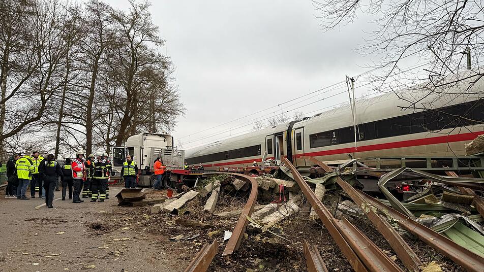 Erstmeldung vom 11.02.2025, 18.07 Uhr: ICE kollidiert mit Sattelzug - ein Fahrgast stirbt