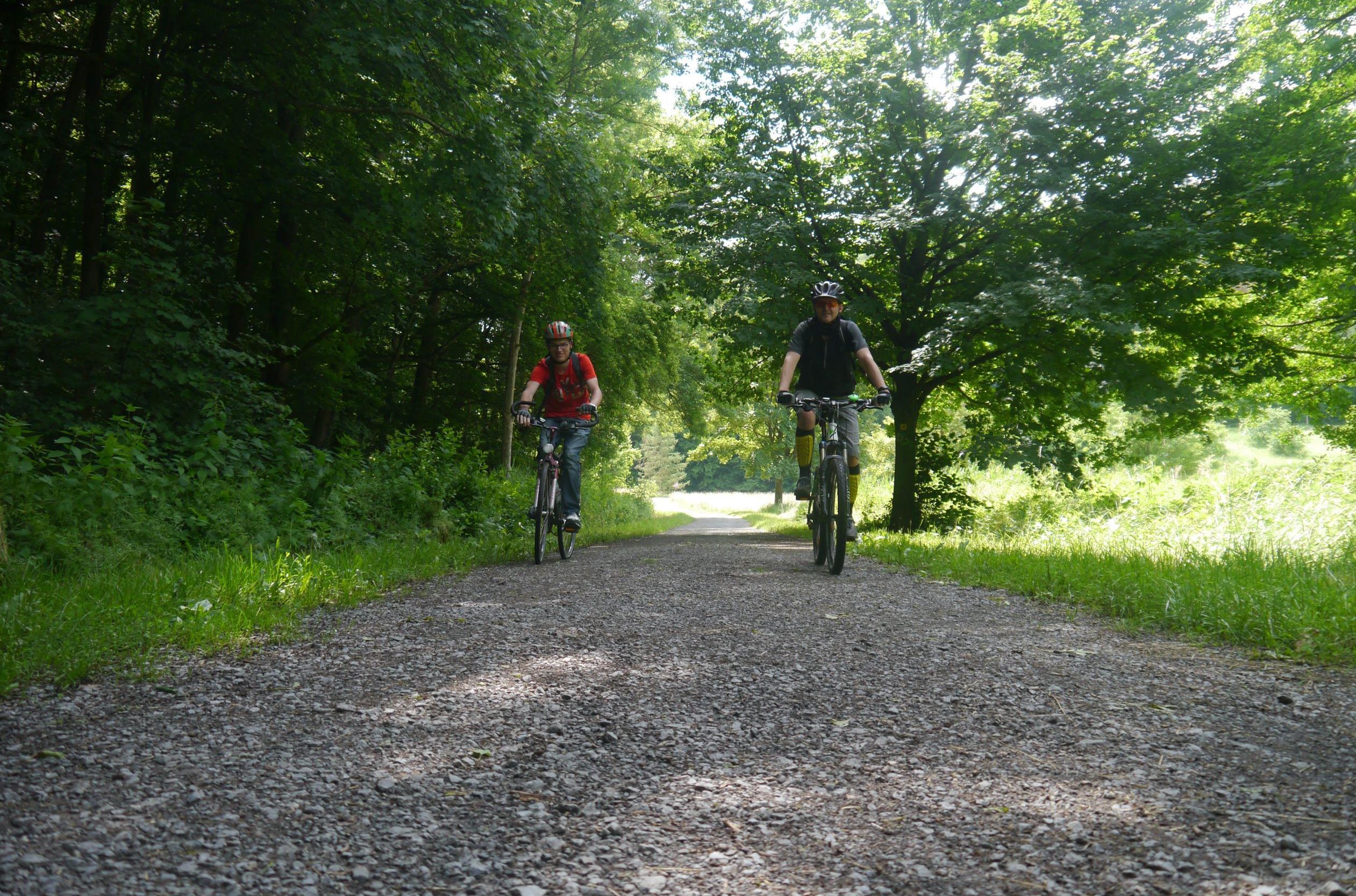 Auf ihren Mountainbikes düsen der Ebelsbacher Alexander Kuhla und Schützling Kevin Köberl durch die Region.
